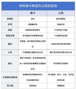 没有投票权,不能参与美国选举。 而且要维持绿卡的合法有效性,必须满足一定的居留条件,若在外国居住超过规定时间,可能会被视为放弃永久居民身份。 相比公民,绿卡持有者更容易受到移民政策变化的影响。在家庭团聚方面,为亲属申请移民时,范围相对较小,等待时间较长。 身份维持:若在国外居住时间过长,可能会被认为放弃永久居民身份。回美国时需要出示绿卡和护照,停留时间过长可能需要解释原因。
