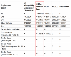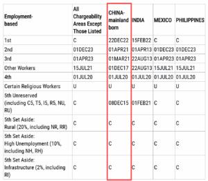 • EB-1類別:表A排期截至日為2022年11月22日;表B排期截至日為2023年5月15日。