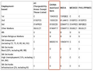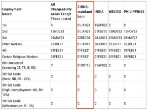 - EB-1类别:表A排期截至日为2022年11月15日;表B排期截至日为2023年1月1日。