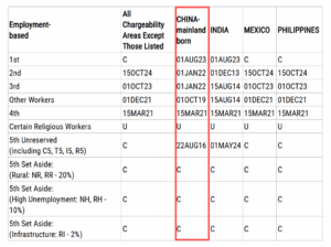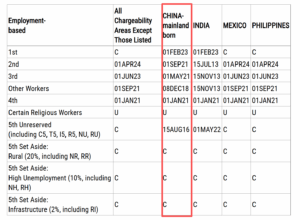 对于中国大陆出生的申请人来说,2026年2月各类别的排期情况如下: