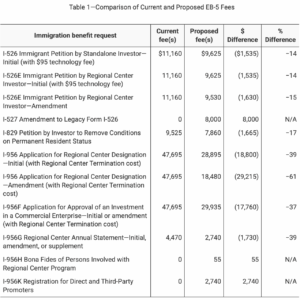 - 投資人核心申請:I-526(獨立投資者)、I-526E(區域中心初始申請)費用從 11,160 美元降至 9,625 美元,降幅 14%;I-829(解除綠卡限製)從 9,525 美元降至 7,860 美元,降幅 17%,相當於每份申請直接省 1665 美元。